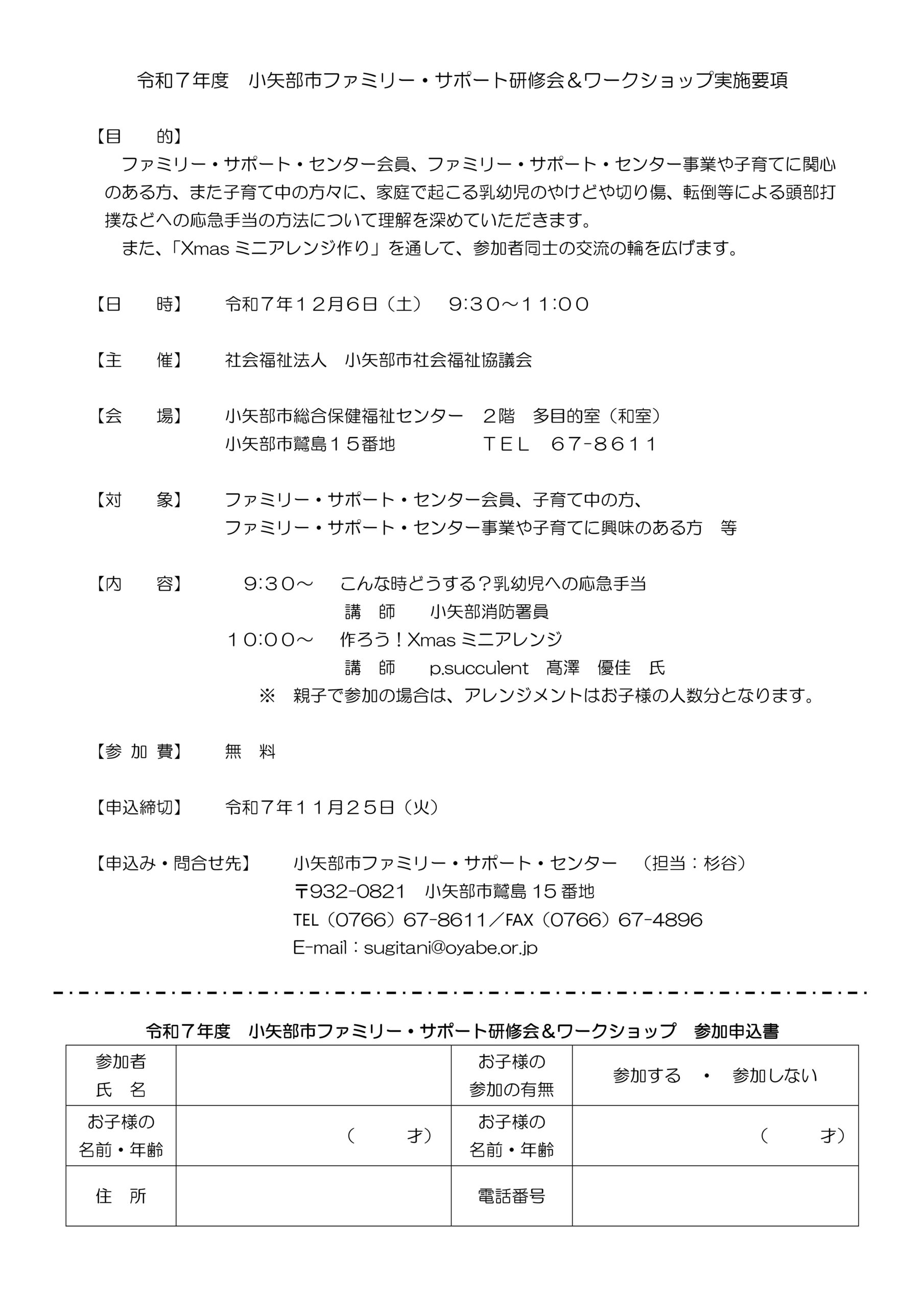 ファミリー・サポート研修会&ワークショップのお知らせ